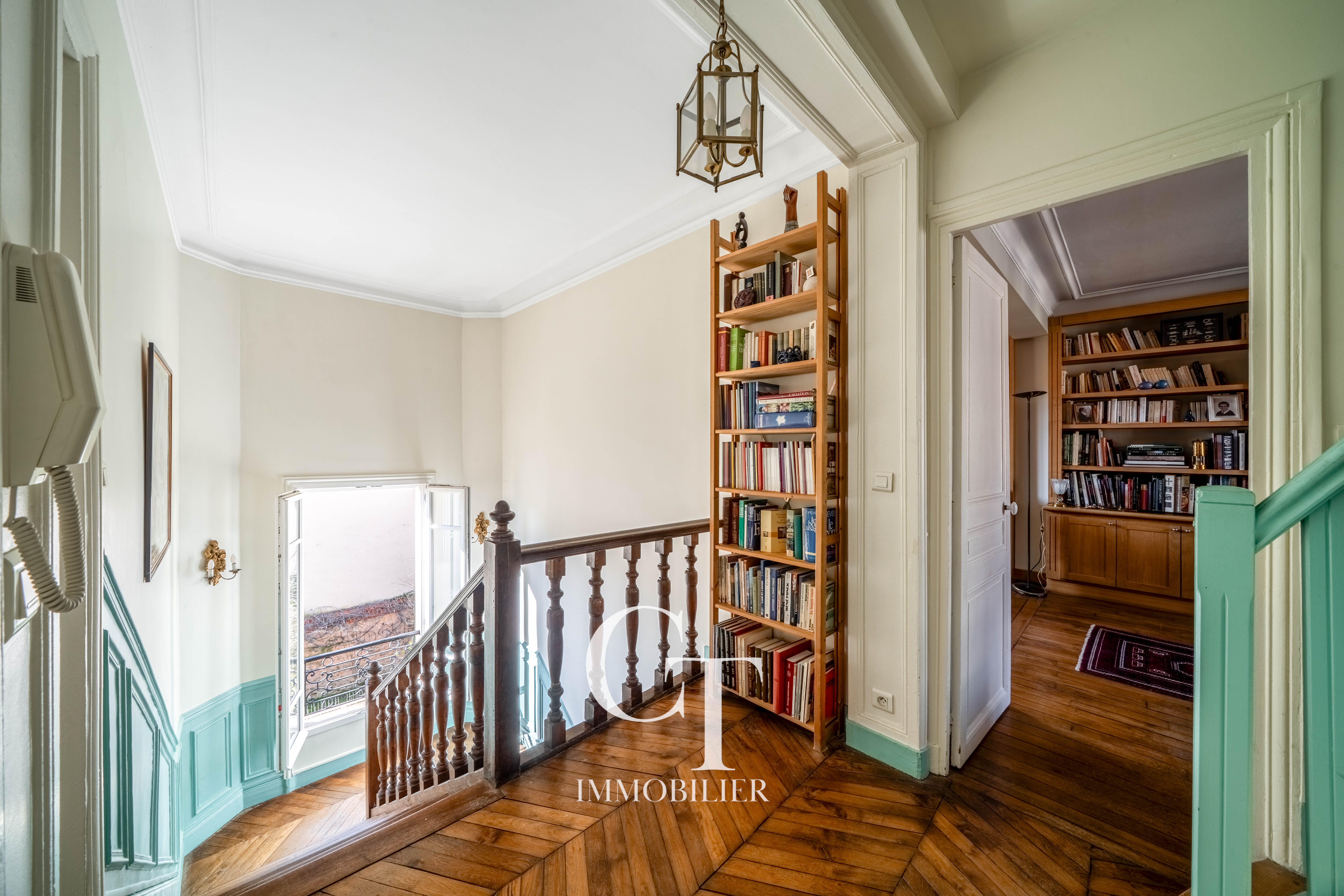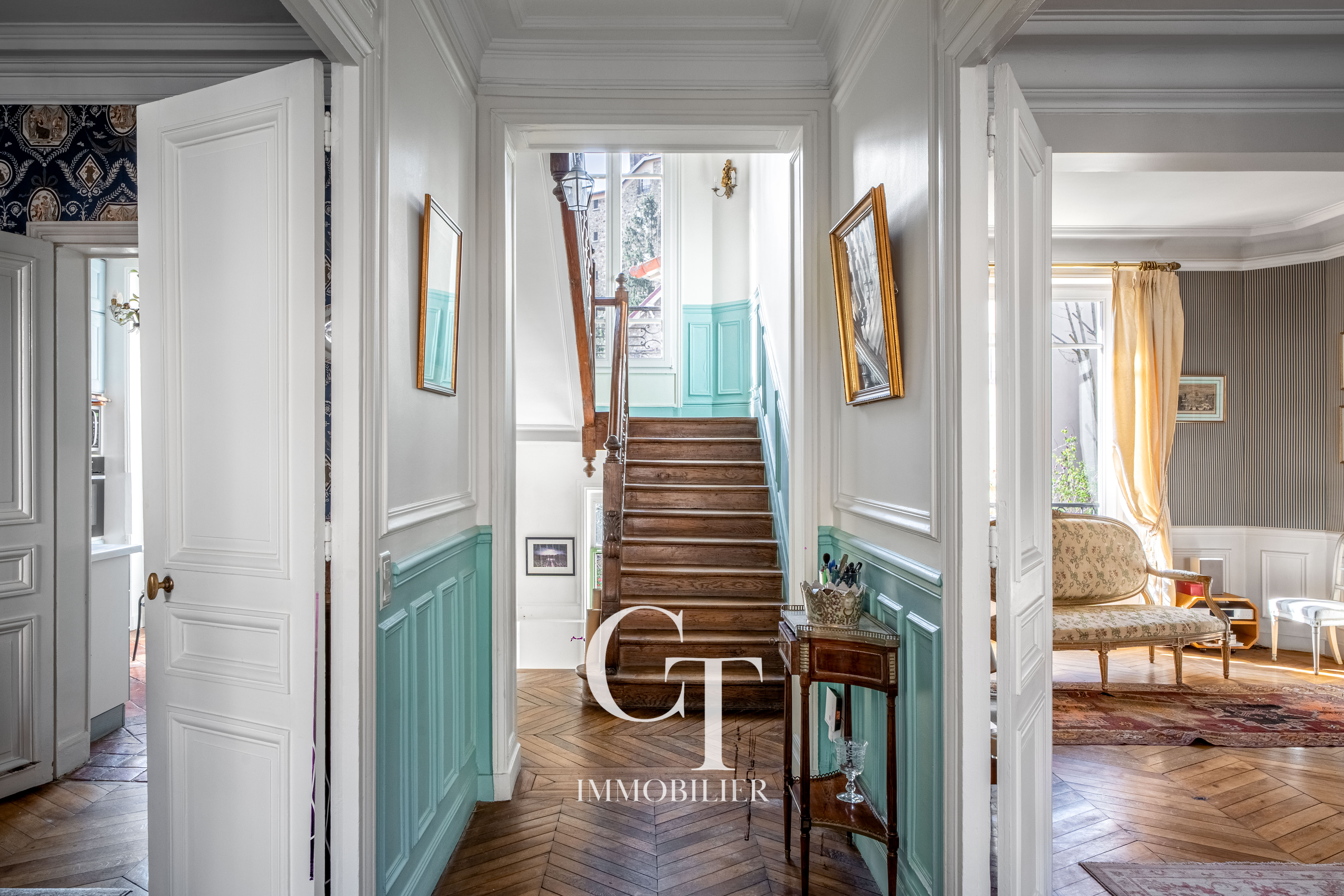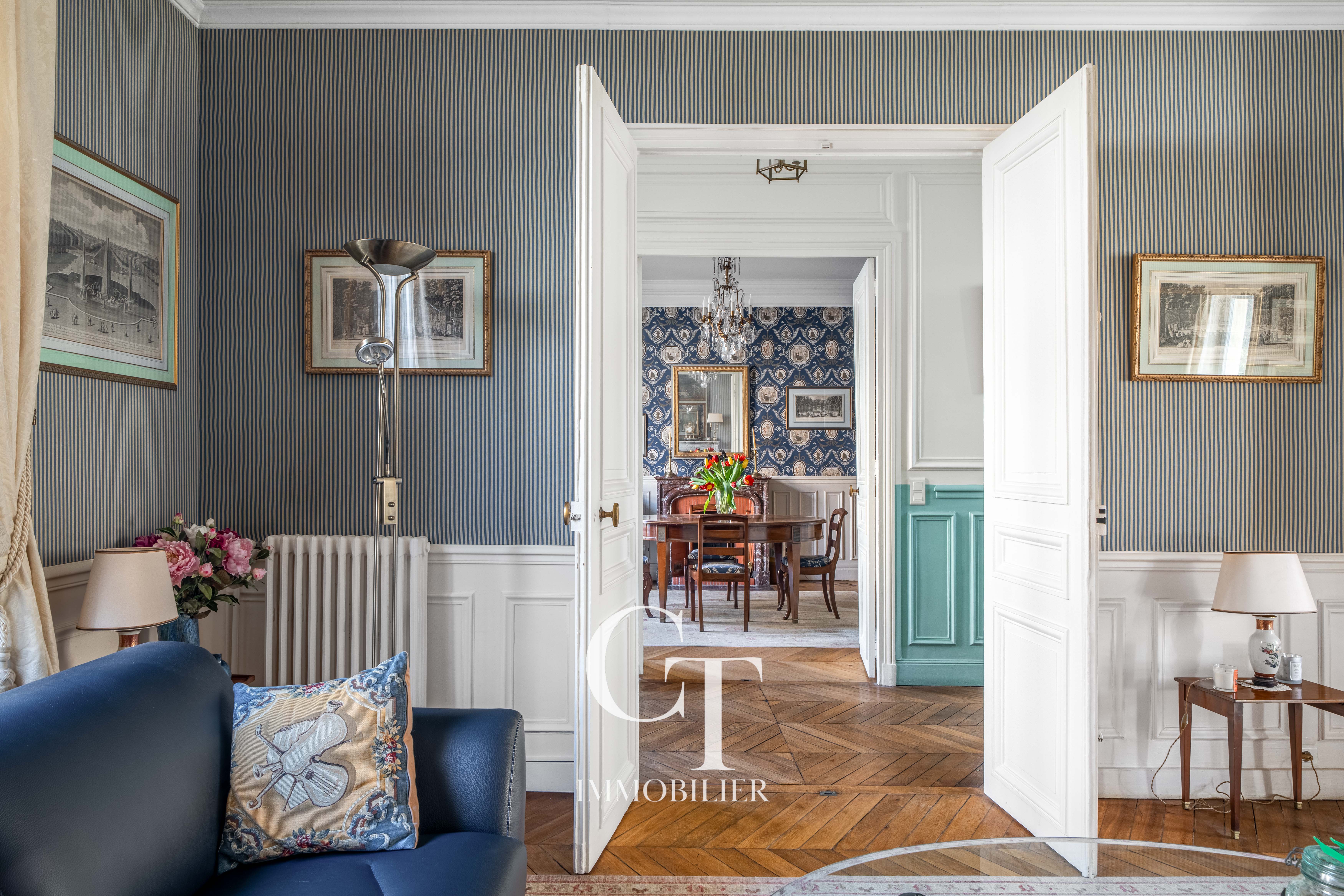 Le rez-de-chaussée accueille de magnifiques espaces de réception, baignés de lumière grâce à une double exposition Est-Ouest.